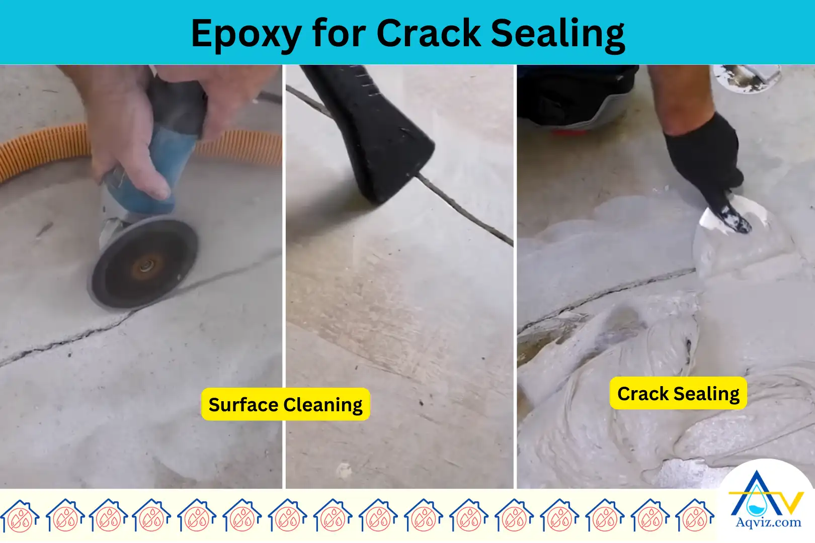Once the concrete is clean, we must prepare it properly to ensure the epoxy bonds effectively. So Aqviz experts follow the below step by step guide to prepare the concrete surface smoothly.